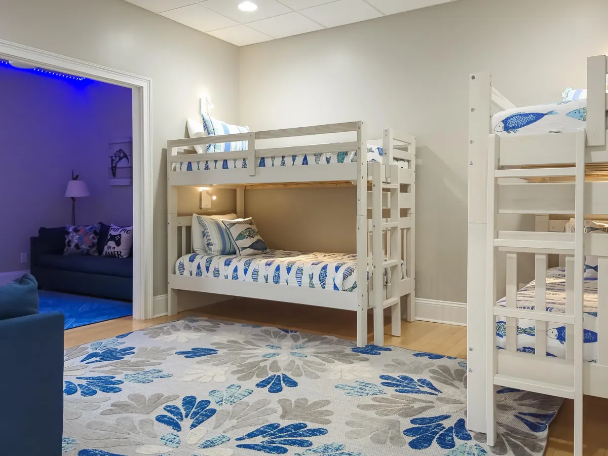 Private bunk room sleeps 6 with gaming lounge, 55" TV and beanbag mattress (+1).