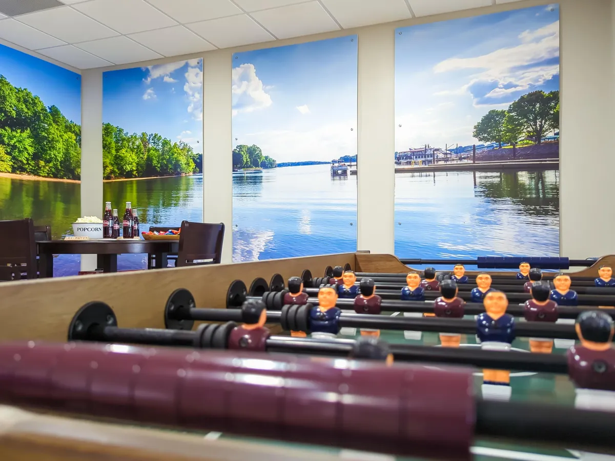 "The room was filled with games, foosball, airhockey and a huge TV." Donna