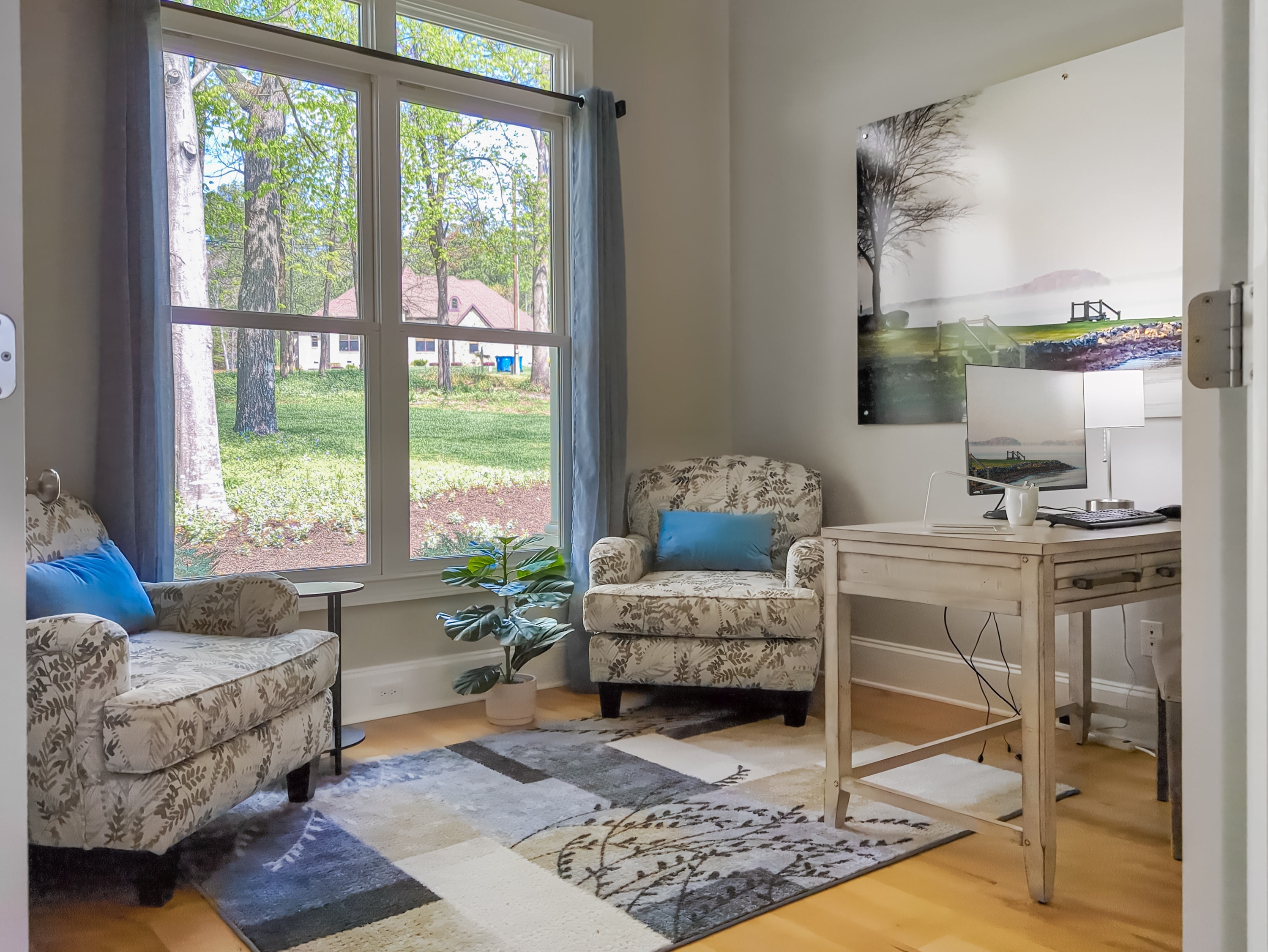 The other side of the house has a private office with french doors that close.