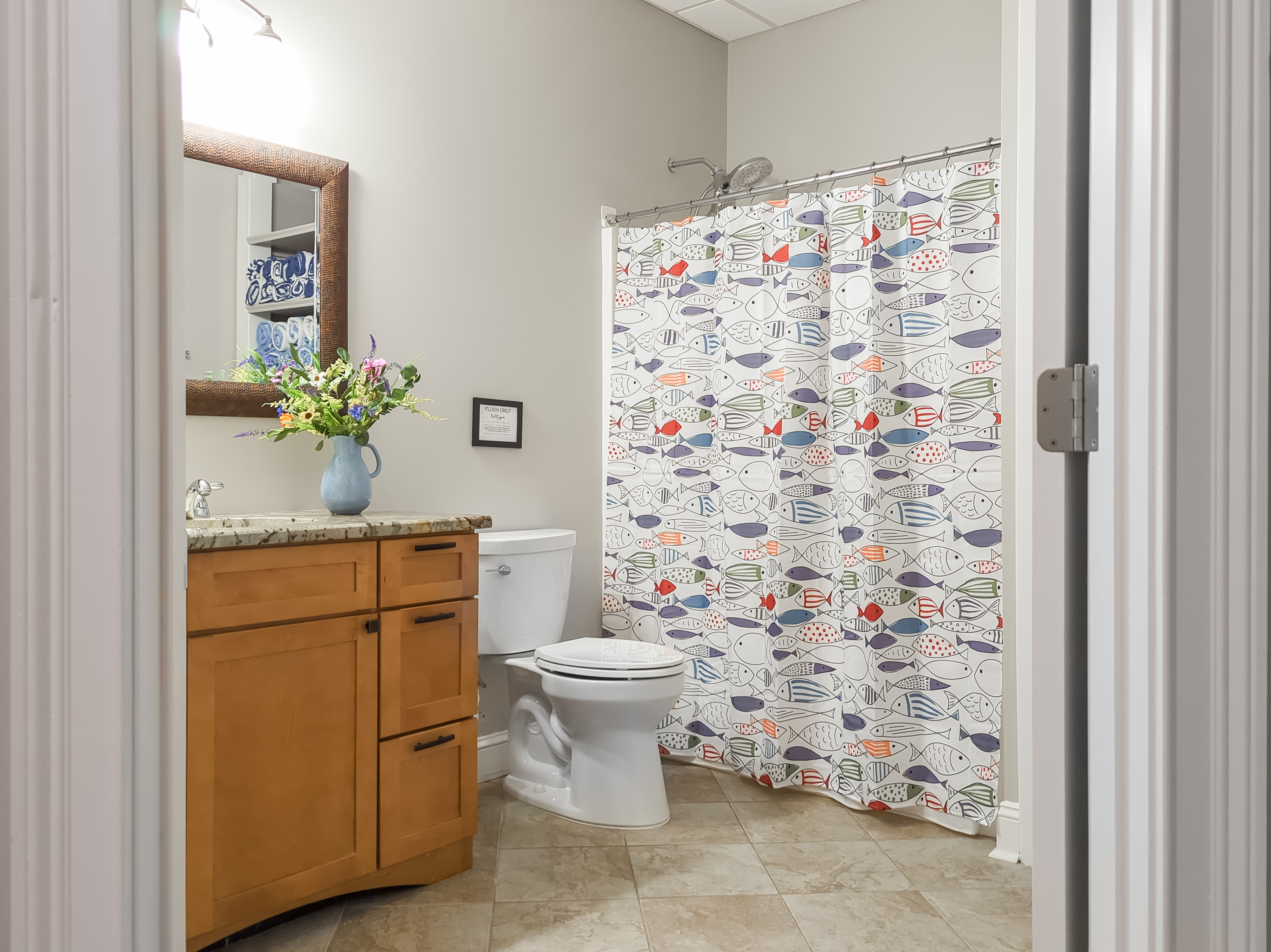 Spacious bathroom for the ground level complete with beach towels for everyone.