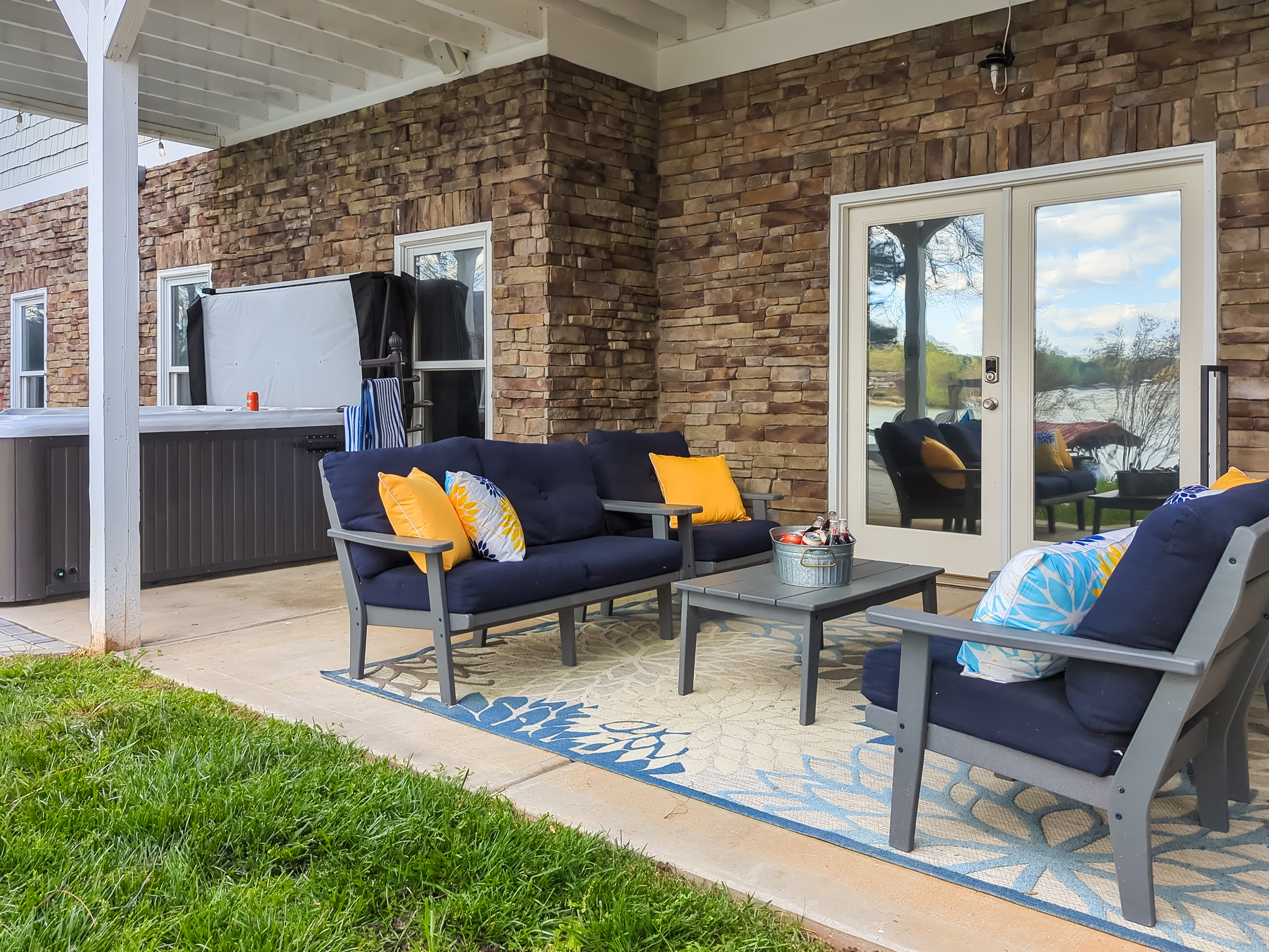 Our covered seating area (with solar blinds) that's perfect for sipping morning coffee.